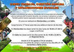 Desde la Unidad de Extensión de la sede Salto de la Universidad de la República, se informa sobre la realización del Curso "Trabajo, cuestión agraria y organizaciones sociales".