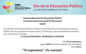 El pasado lunes 29 de setiembre ocasión de conmemorarse el día Nacional de la Educación Pública, se realizará el Acto de Lanzamiento de la iniciativa “Salto Ciudad Universitaria”, que impulsan de forma conjunta la sede Salto Regional Norte de la Universidad de la República, la Universidad Católica del Uruguay Sede Salto, Instituto CTC-ORT, Instituto de Formación Docente de Salto, Centro Regional d