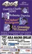 El viernes 9 de mayo a las 21 horas se realizará el espectáculo “Cuatro por cuatro” en el marco de una gira nacional, a cargo de cuatro destacados mexponentes de la música popular uruguaya: Gastón Ciarlo “Dino”, Roberto Darvin, Julio Víctor González "El Zucará" y "El Heber" Rodríguez.