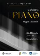 Con el apoyo de del Cenur Litoral Norte de la Universidad de la República y Cultura de la Intendencia de Salto, el concertista y docente oriundo de Artigas, Miguel Lecueder, brindará un Concierto de Piano en el Teatro Larrañaga de Salto.