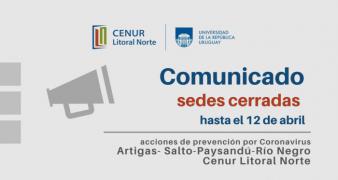 De acuerdo al Comunicado COVID-19 n.° 5, del 20 de marzo de 2020, por orden del Rector de la Universidad de la República, todos los edificios del Cenur Litoral Norte, es decir la sede de Salto, así como la sede de Paysandú y las Casas de Udelar en Artigas y Río Negro, se mantendrán cerradas hasta el 12 de abril de 2020.