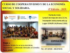 La Unidad de Extensión de la sede Salto, Cenur Litoral Norte Udelar, informa que hasta el 3 de mayo se encuentran abiertas las inscripciones para participar de la octava edición del Curso de cooperativismo y de la Economía social y solidaria. Los encuentros inician el 6 de mayo en el edificio central de la sede local.