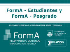 La División Estadística de la Udelar informa que se encuentra disponible el "FormA Estudiantes", relevamiento continuo de información de estudiantes. Se trata de un formulario de carácter obligatorio para todos los estudiantes de grado de la Udelar, independientemente de cuál sea su generación de ingreso.