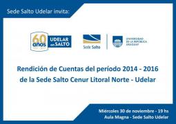 El próximo sábado 19 de noviembre, en la Sede Salto del CENUR Litoral Norte se realizará el II Congreso Regional de Educación del Litoral Norte: “Inclusión y mejora educativa: caminos para lograrlo”. El mismo está organizado por la Comisión Departamental de Educación Salto, Unidad de Planificación, Investigación y Evaluación y el Campus Litoral Norte- CETP.